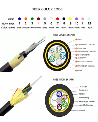 Eğlence için yenilik ADSS Fiber kablo kusursuz akış hizmetleri için çift ceket 12 24 36 48 72 96 144 288 çekirdek ADSS